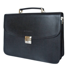 Цвет: черный Материал: Натуральная кожа Вес: 1,1 кг. Портфель Rofelle (Рофелле) выполнен из шорной толстой натуральной кожи черного цвета. Портфель состоит из двух основных отделений под клапаном, закрывающимся на поворотные замки. Отделения разделены карманом на молнии. Внутри отделений есть отделения для авторучек. В комплекте идет съемный п..